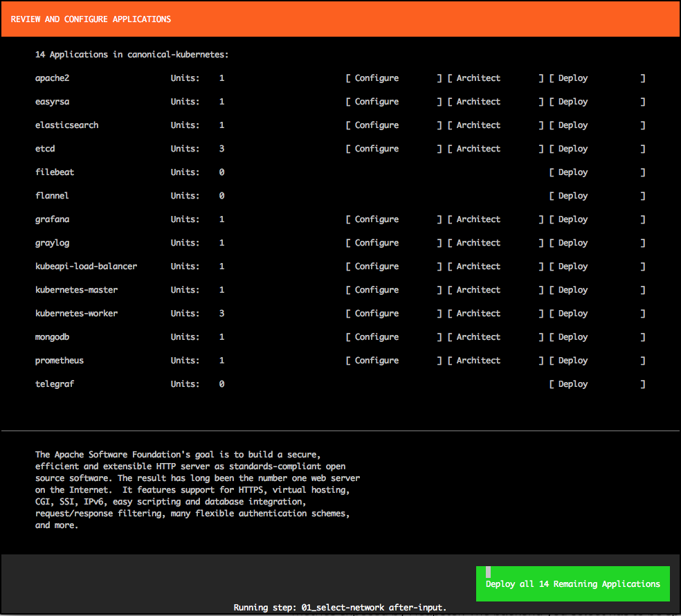 我将使用 conjure-up 和 Canonical 版本的 Kubernetes (CDK) 去探索 Kubernetes。我发现 conjure-up 接口对部署大型软件很有帮助,但是我知道一些人可能不喜欢 GUI、TUI 以及其它用户界面。对于这些人,我将用命令行再去部署一遍。
