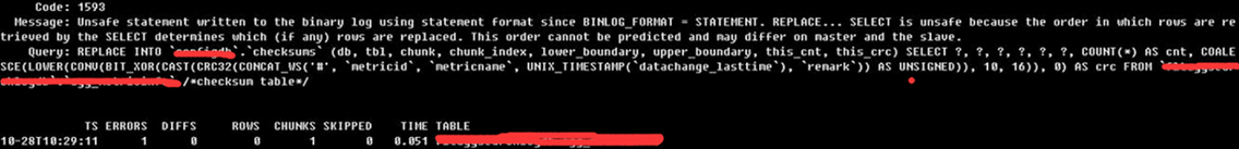 本身error code的值并不影响功能使用,但正好遇到第三方的pt-table-checksum工具这里代码写死了code值,所以导致了上面的问题。