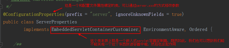 而这个ServerProperties的很多属性,port,adress,serverPath等等都可以在配置文件中server.xxx=xxxxx进行修改。