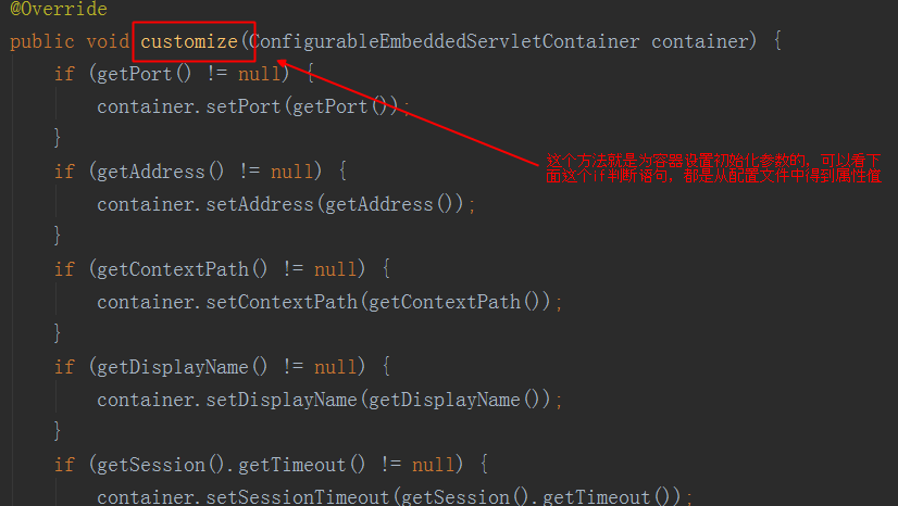 在这个类中,起作用的主要是这个customize方法来设置容器的属性