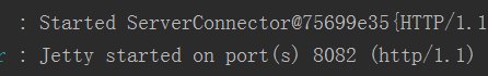 可以启动容器,看控制台,8082端口,启动成功,而且覆盖了yml配置的8080端口,这种方式的优先级更高。