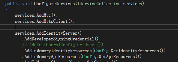 (1)先对API进行保护,在Startup.cs的ConfigureServices方法中添加: