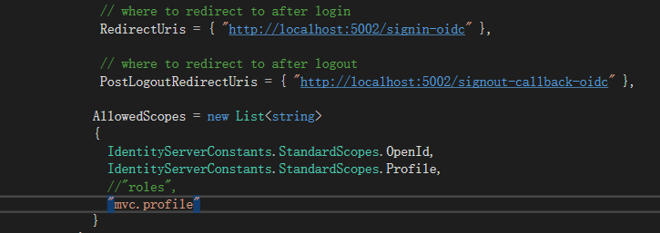 }(5)在GetClients中把定义的mvc.profile加到Scope配置