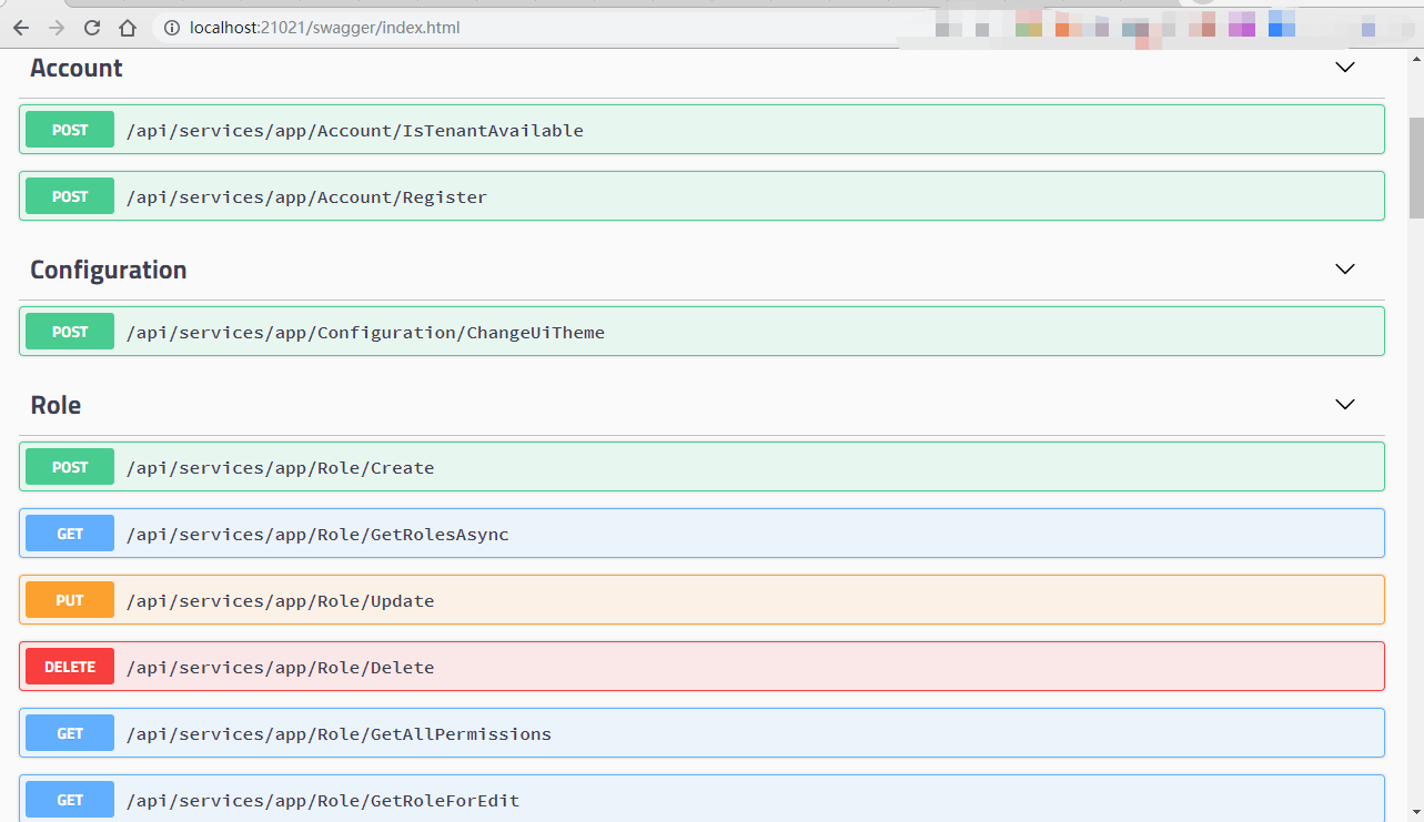 通“Update-Database”这个命令进行数据库还原,等待还原完成后,直接F5启动,在端口号后面加上“/swagger”会在浏览器中看到以下界面