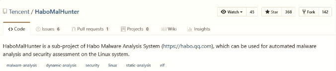 今天说的哈勃沙箱是腾讯哈勃检测系统中,linux恶意文件检测部分的开源代码。github地址为: