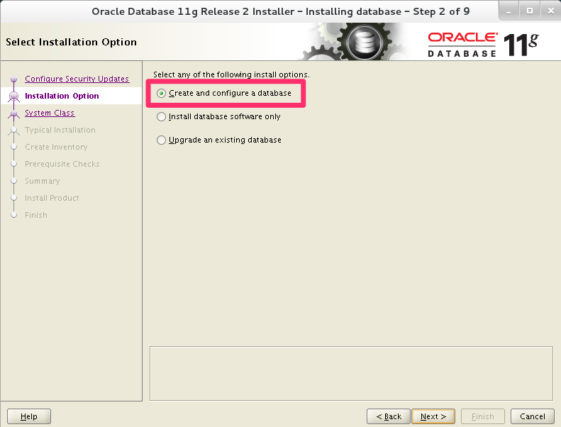 我在 Oracle 11g 上选择 “Create and configure a database”,如下图所示。