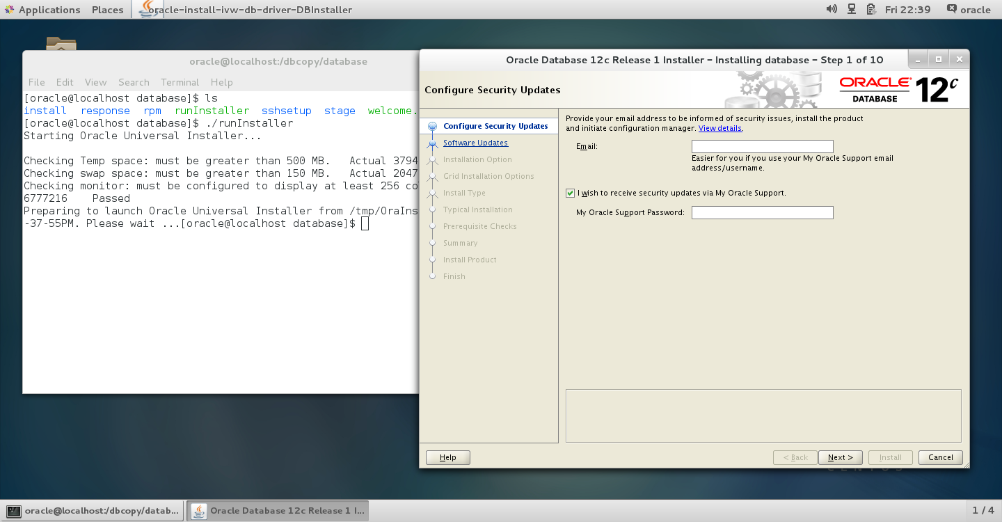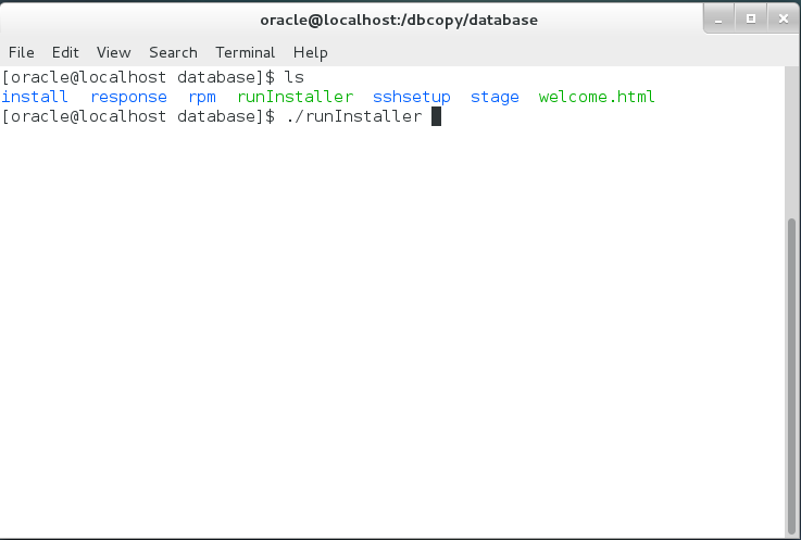 使用终端更改工作目录并导航到你解压两个 zip 文件的目录。在终端中输入以下命令开始安装 12c。