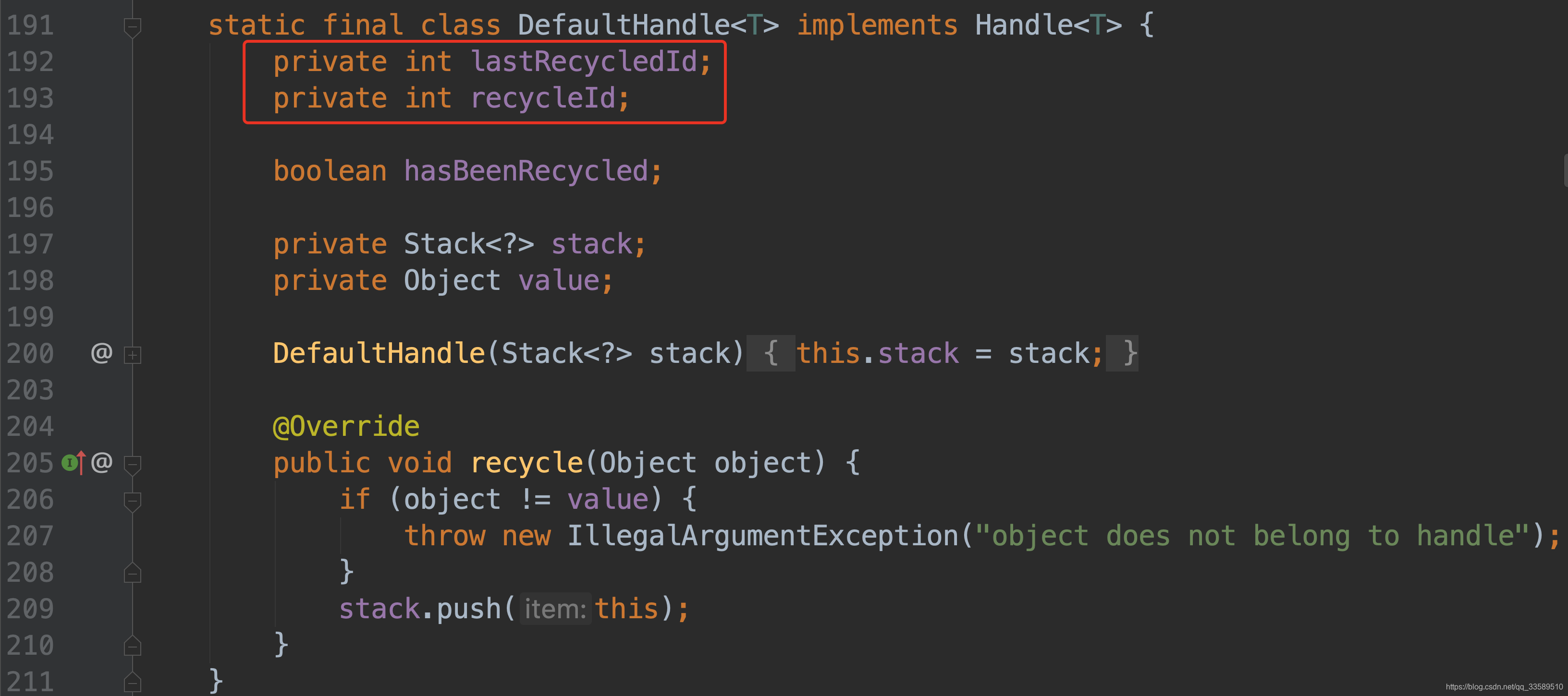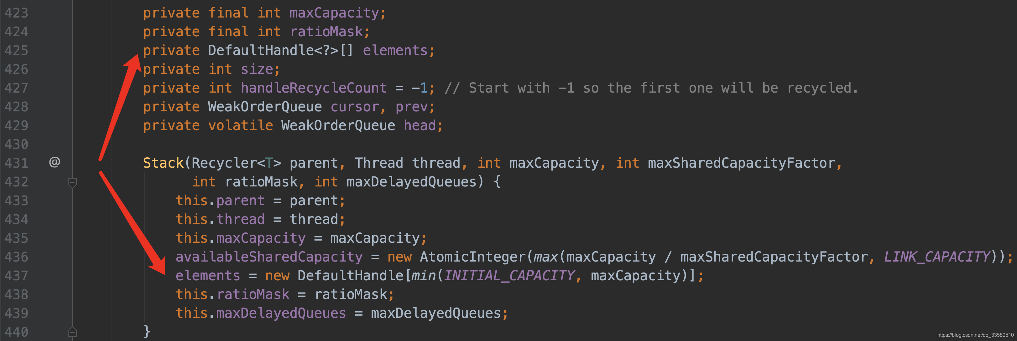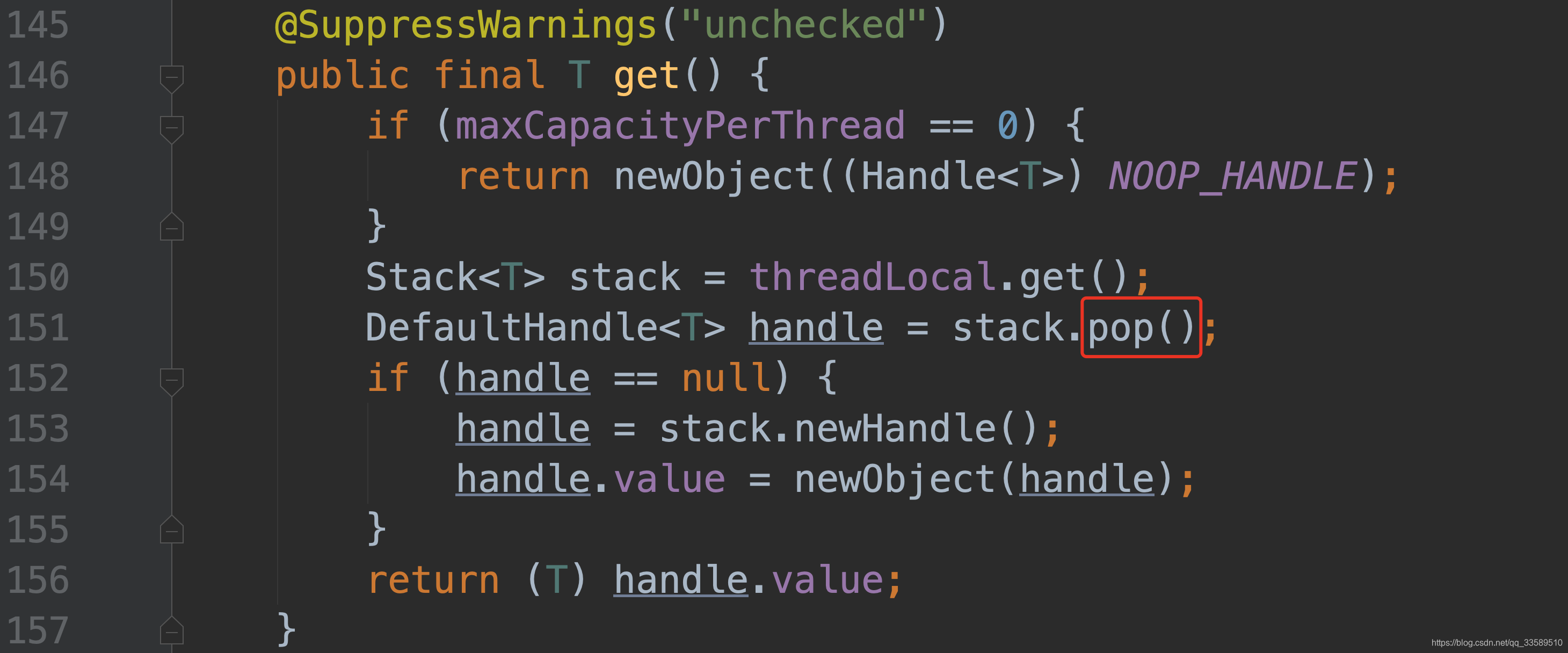 若当前线程T1去获取对象,若 stack 中有对象,则直接拿出.T1所拥有的对象即为T1拥有的 stack 中的对象,若发现其中为空,会尝试与 和T1的 stack 关联的WOQ中的 T1创建的,但是在其他线程中去回收的对象.那么,T1中对象不足,就需要在其他线程中去回收.