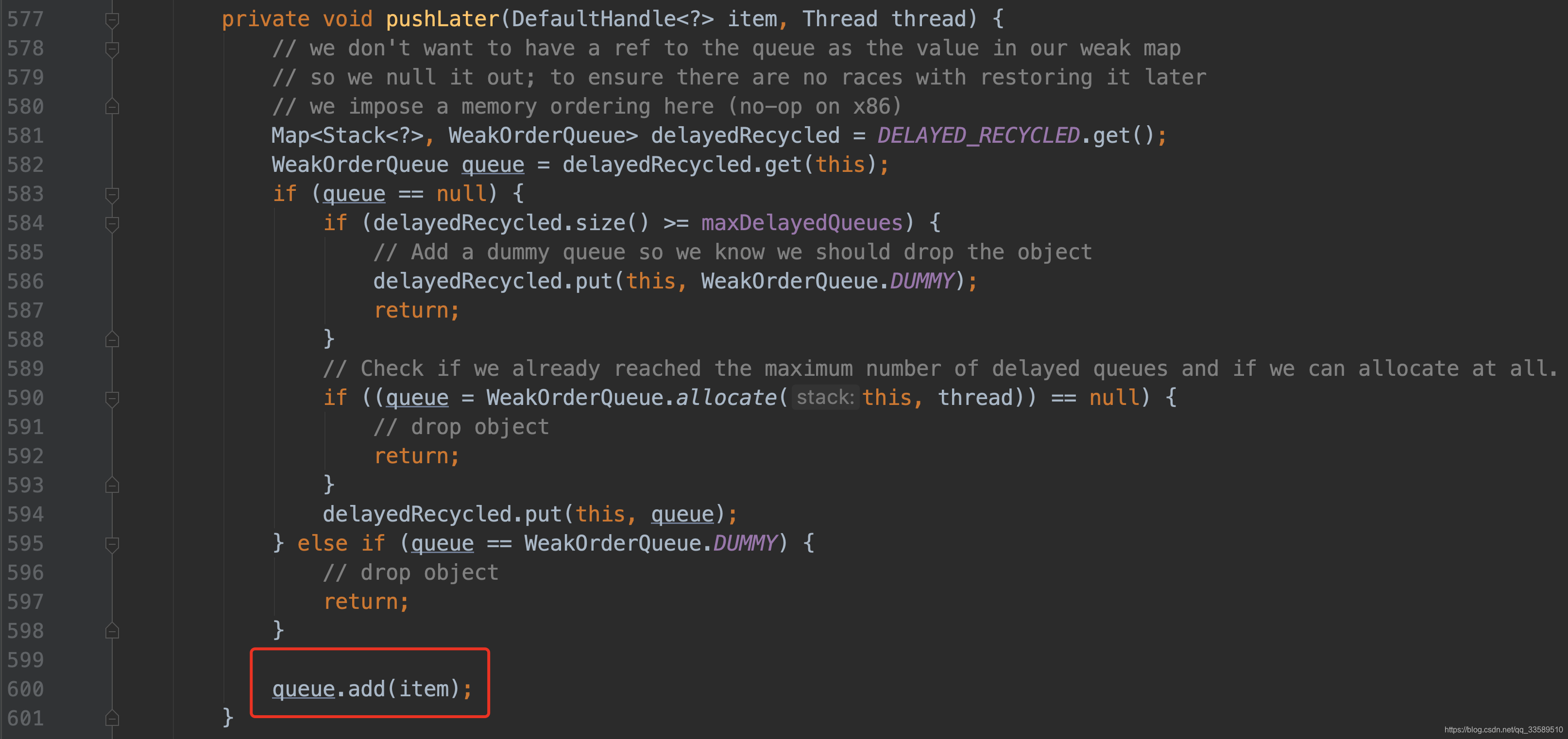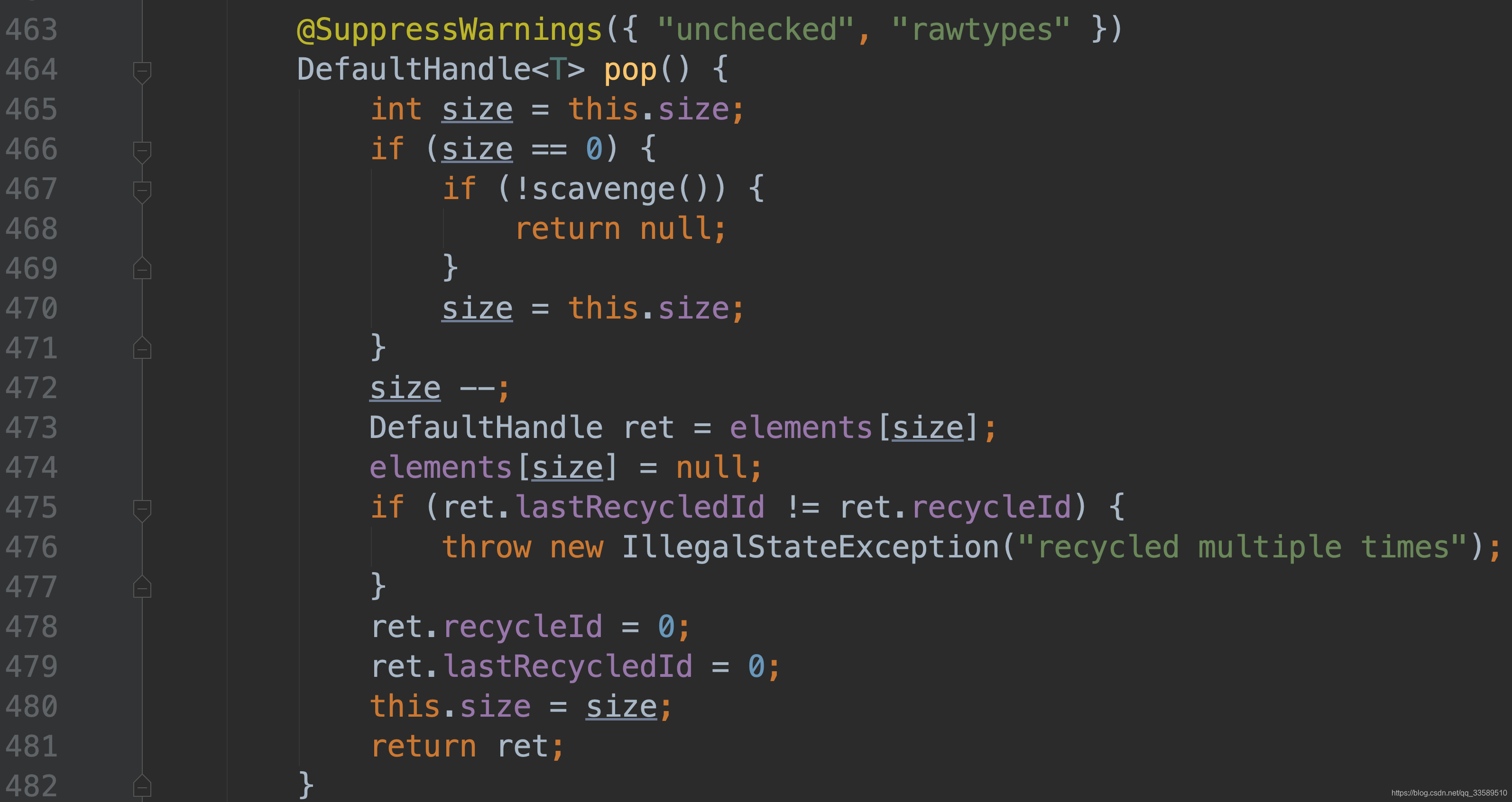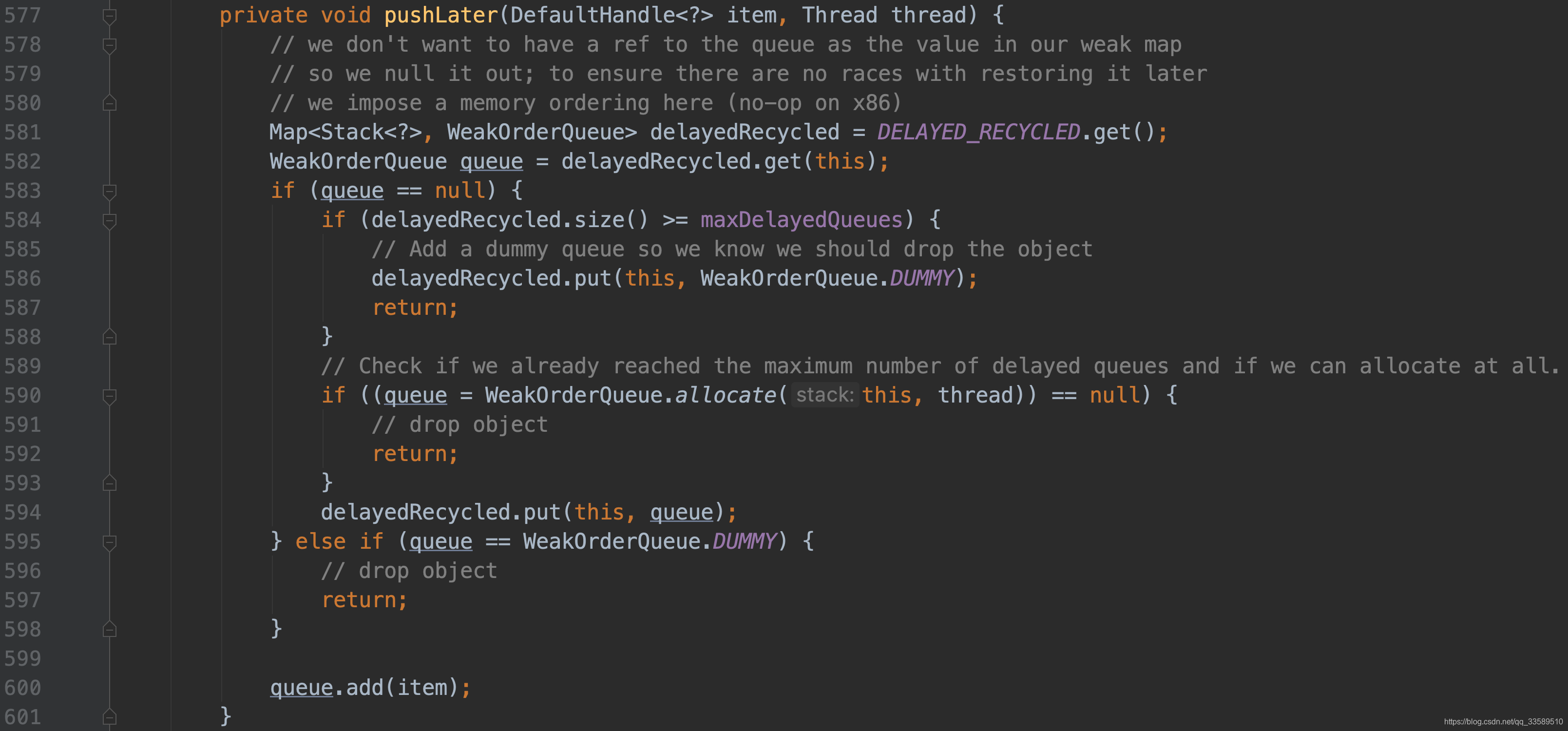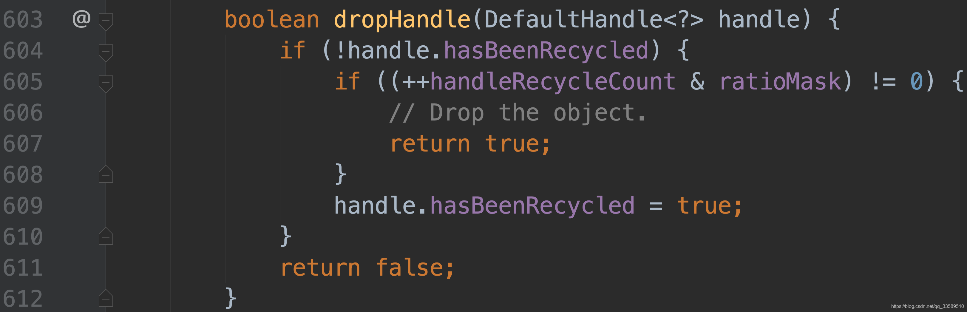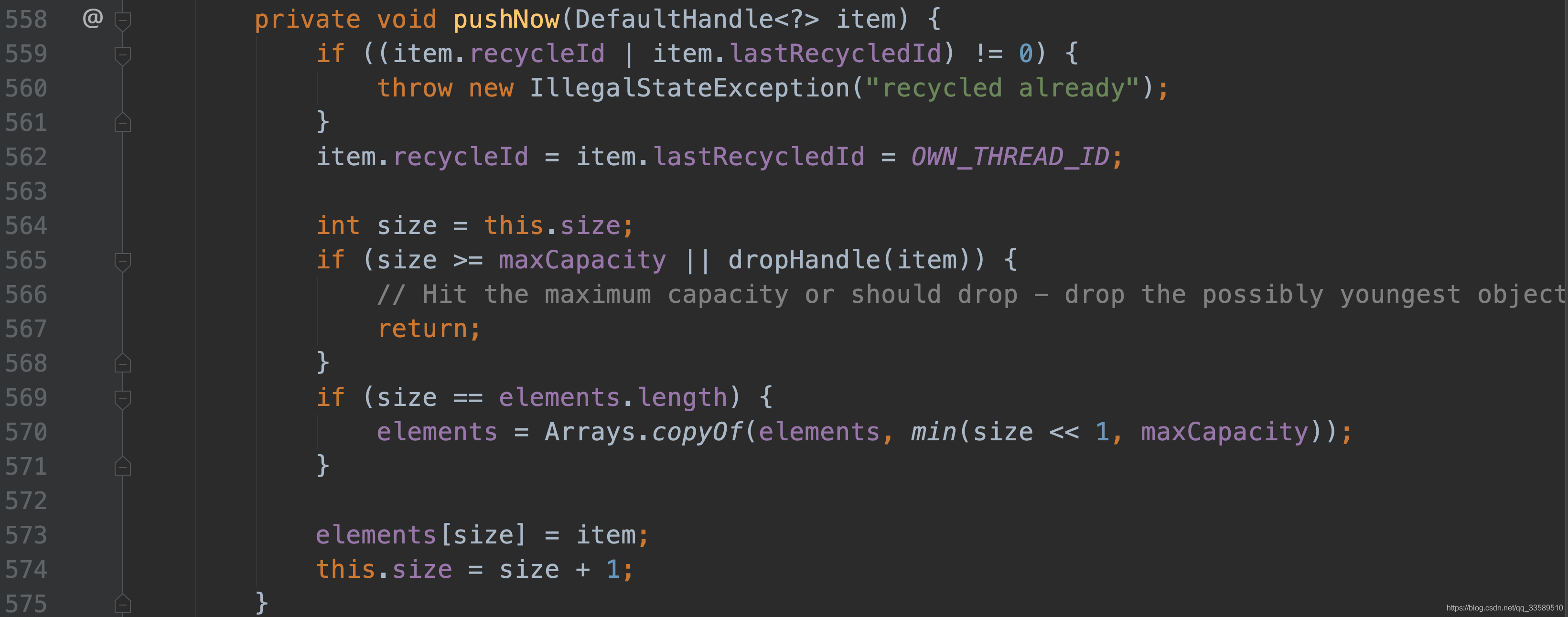紧接着判断当前 size是否已到 maxcapacity,若达到上限,直接丢弃该对象即直接 return;否则继续判断 drop 处理器