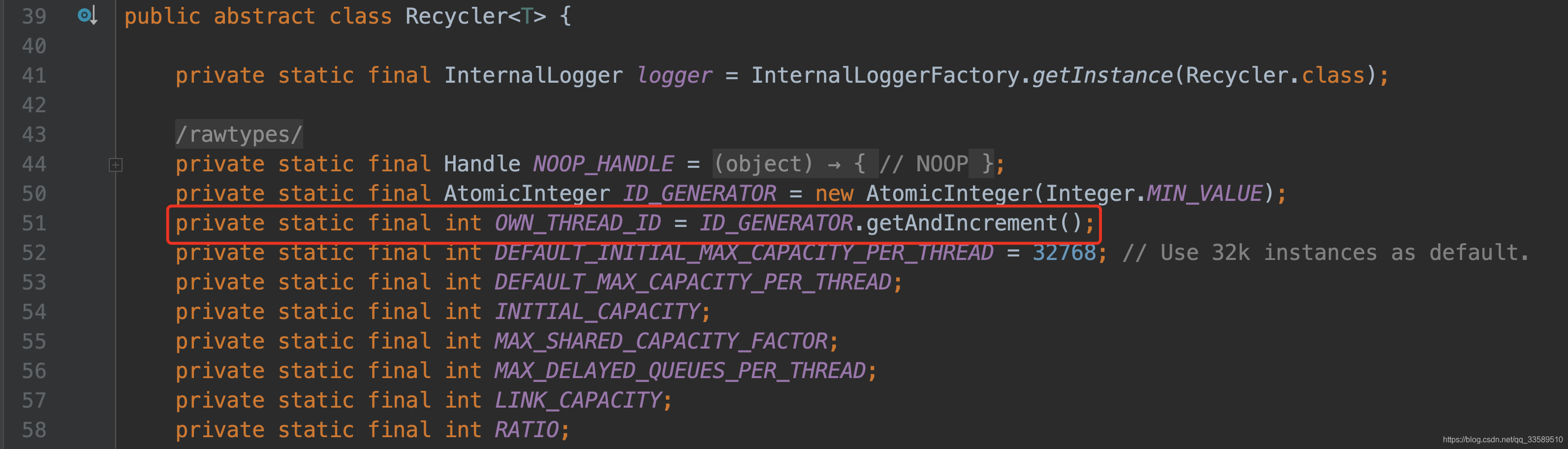 nextIndex是InternalThreadLocalMap父类的一个全局静态的AtomicInteger类型的对象,这意味着所有的FastThreadLocal实例将共同依赖这个指针来生成唯一的索引,而且是线程安全的