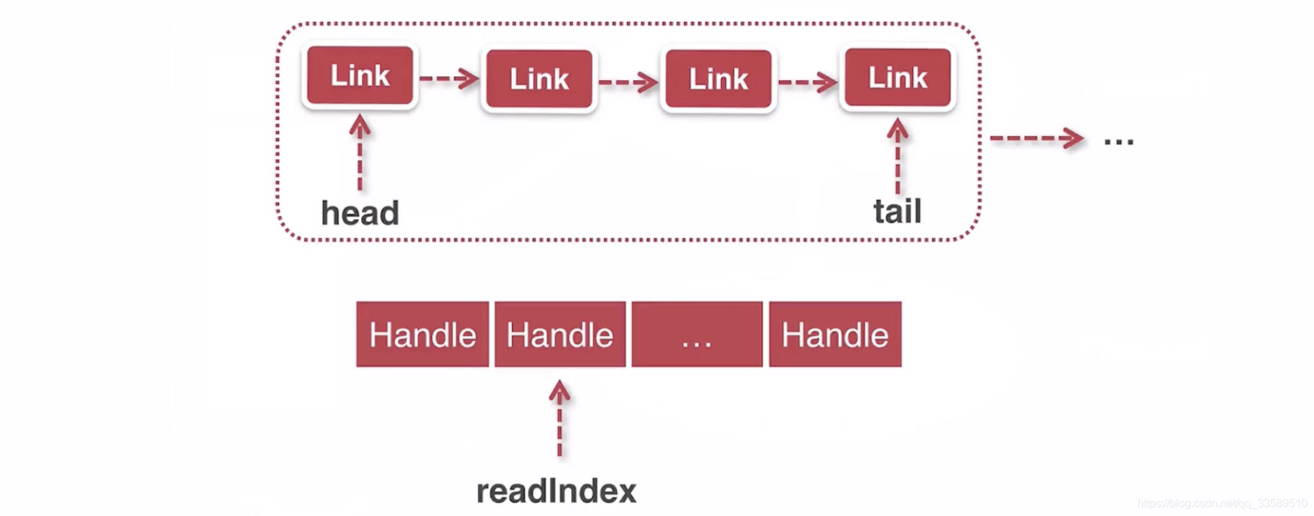 一个链表结构.将其 handle与Link 进行分离,极大地提升了性能,