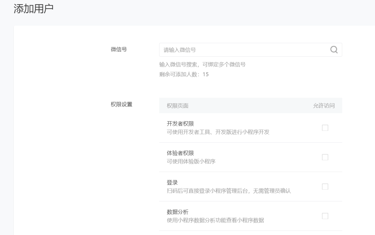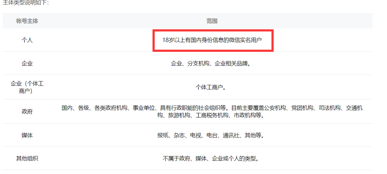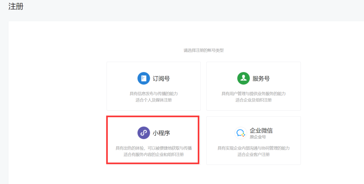 选择“小程序”,点击“查看类型区别”可查看不同类型帐号的区别和优势。