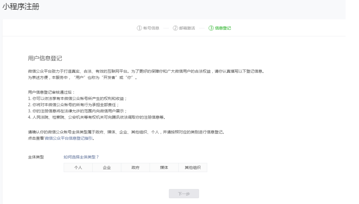 了解了小程序的历史和它未来的前景,我们开始注册小程序
