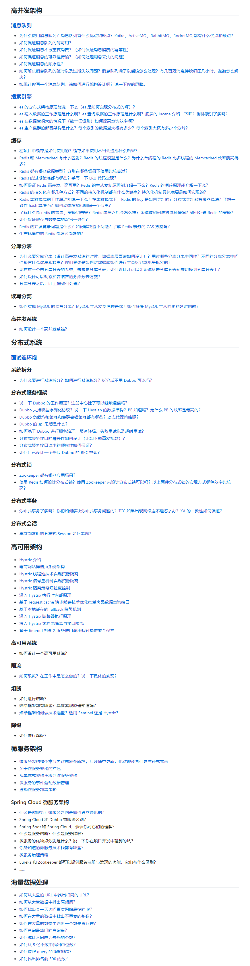 这是一份后端进阶知识总结,主要以“面试题 + 解析”的形式呈现,涵盖高并发、分布式、高可用、微服务、海量数据处理等领域知识。
