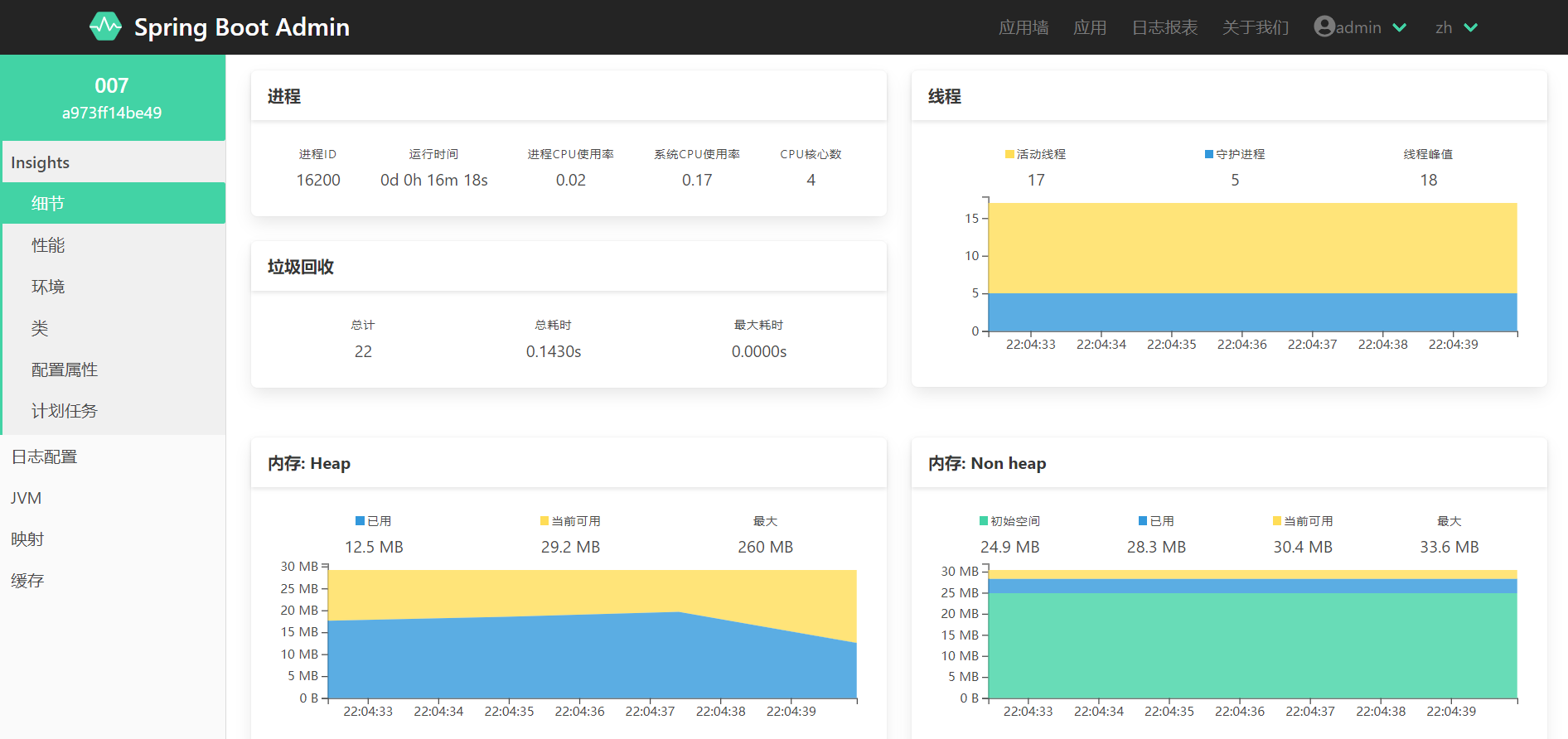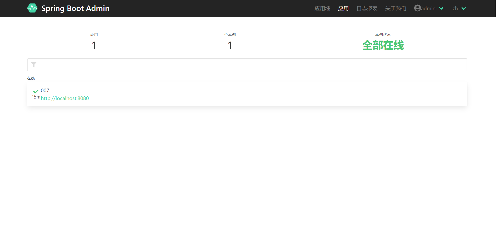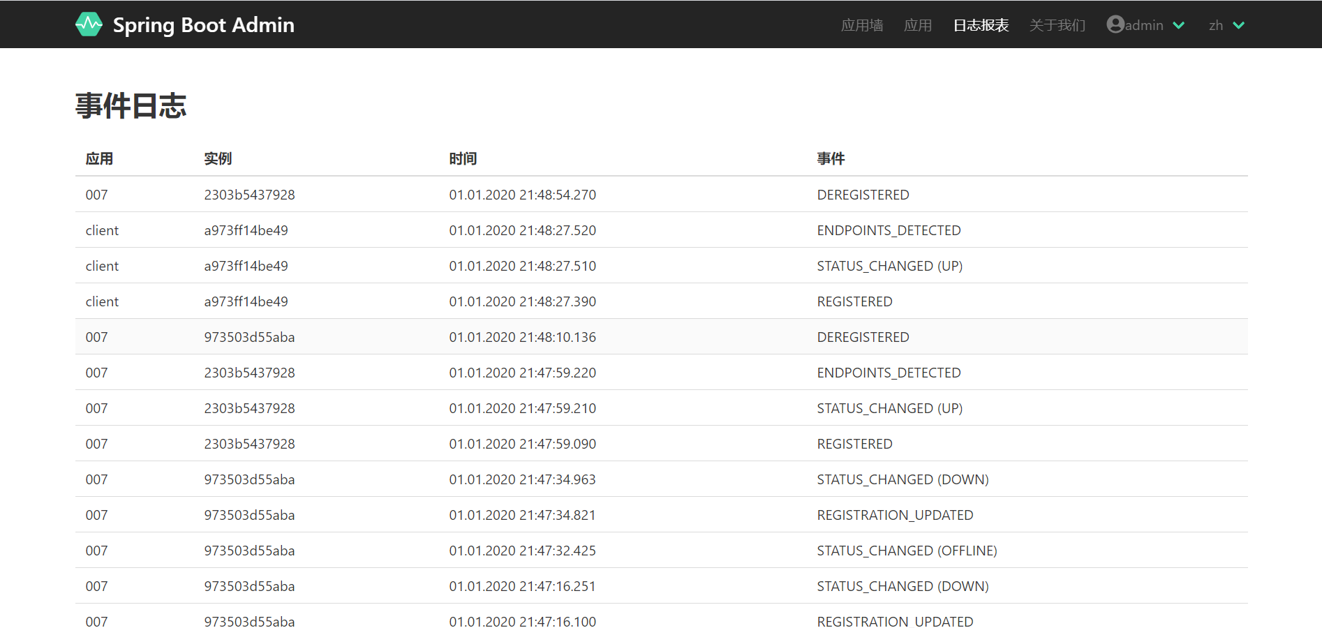 注意一定要版本对应,否则会出现意想不到的问题,建议使用Srping Boot Admin 2.0+以上版本,可以多语言切换。