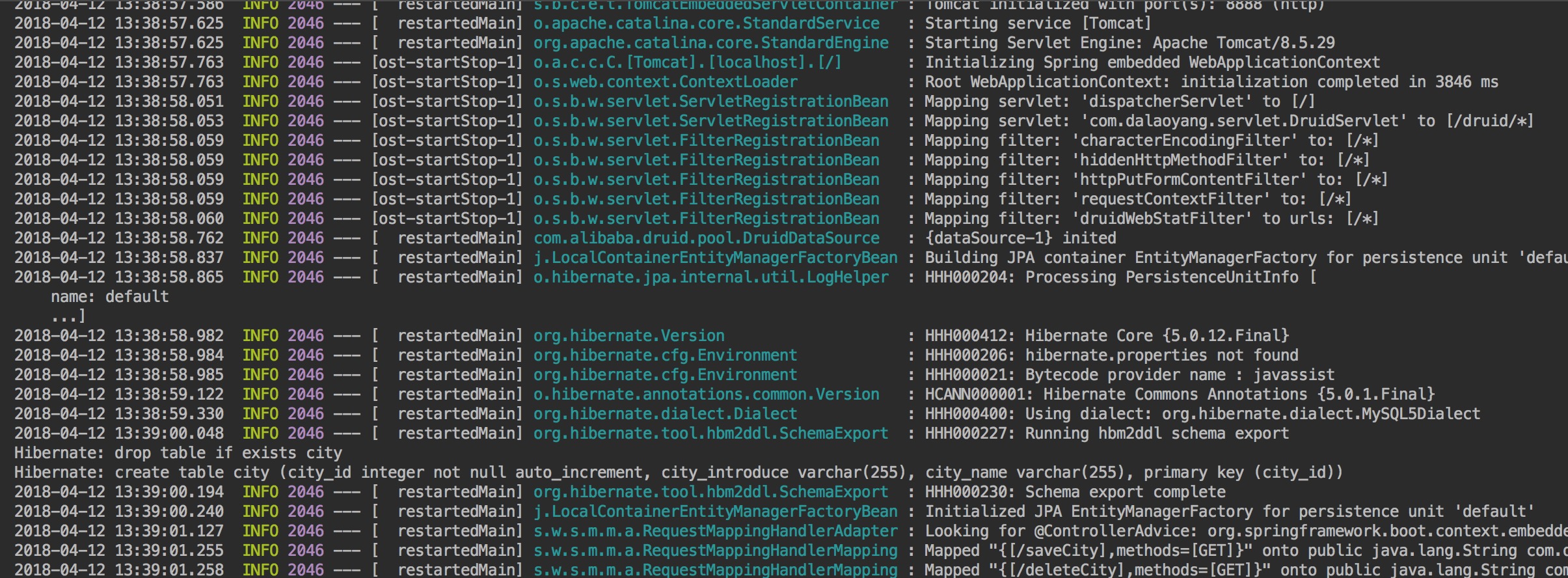 }然后启动项目,可以看到控制台已经创建了city表。