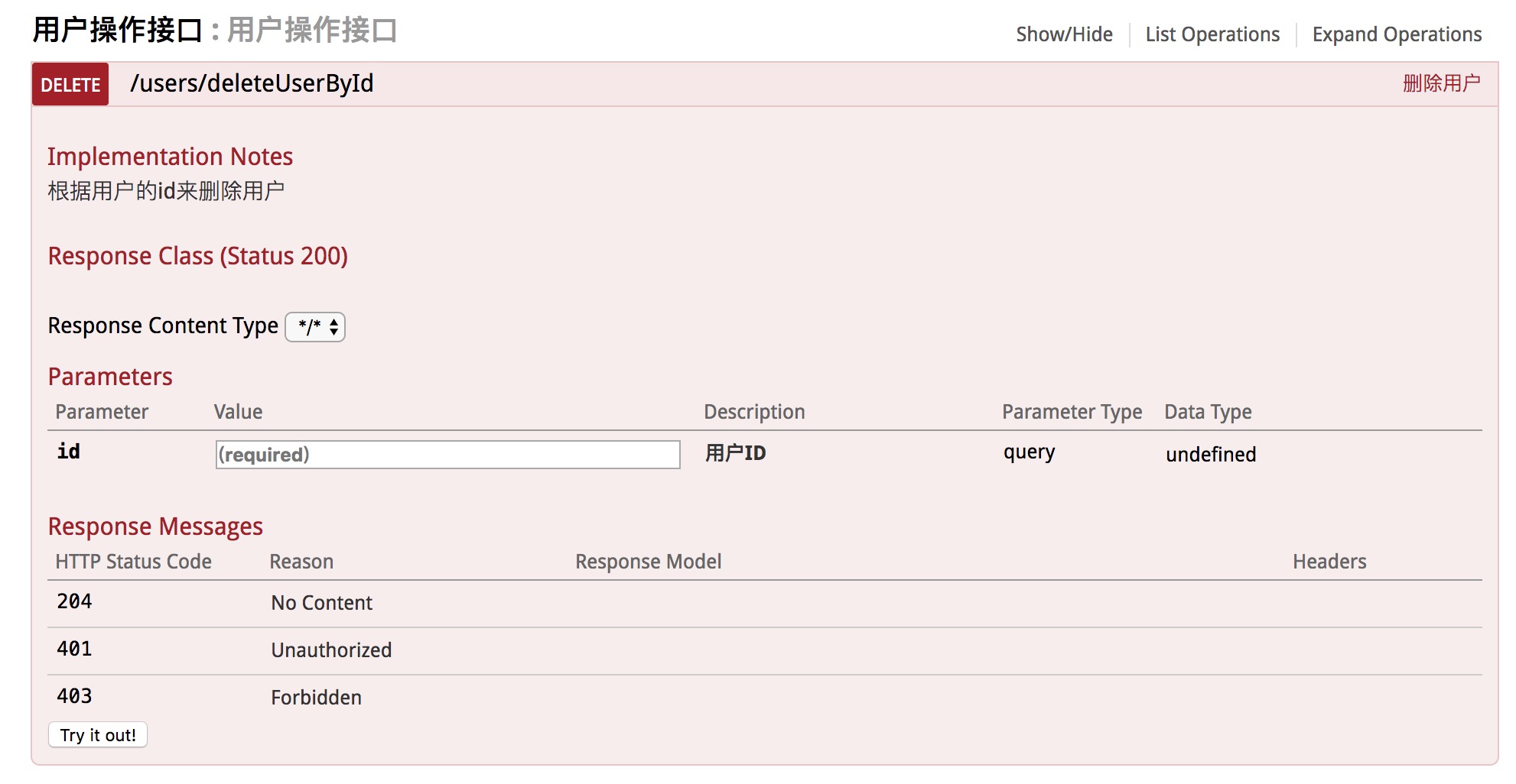 @ApiOperation(value="删除用户", notes="根据用户的id来删除用户")