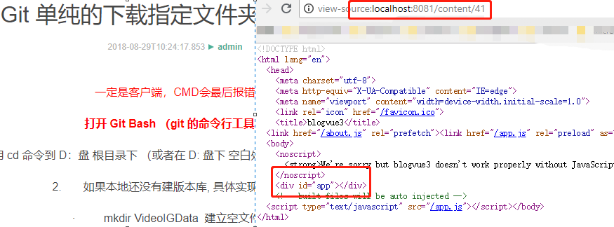 所以说,咱们如果需要想让咱们的文章,网站等被搜索引擎爬取,然后被大家所搜索到,必须要设置 TDK 和有页面内容,但是这个时候,我们满心开新的打开我们的 Vue 博客第一版的项目时候,却发现了这个样子。。