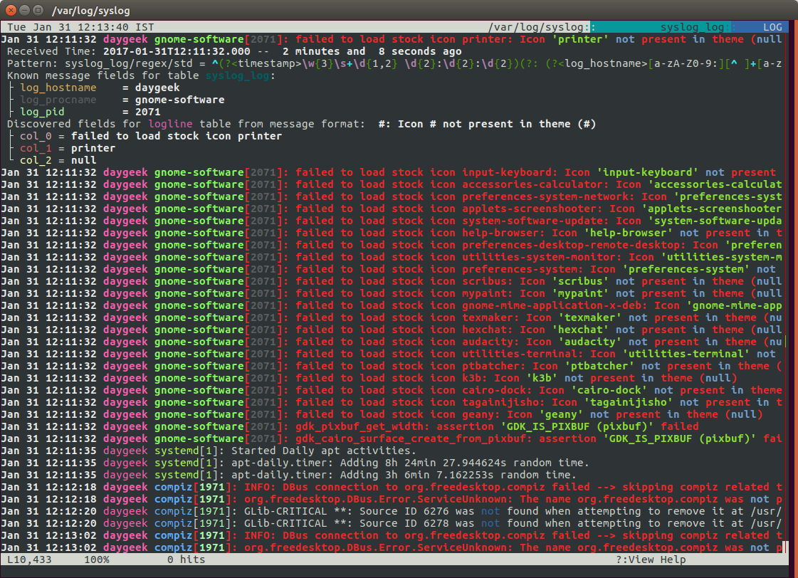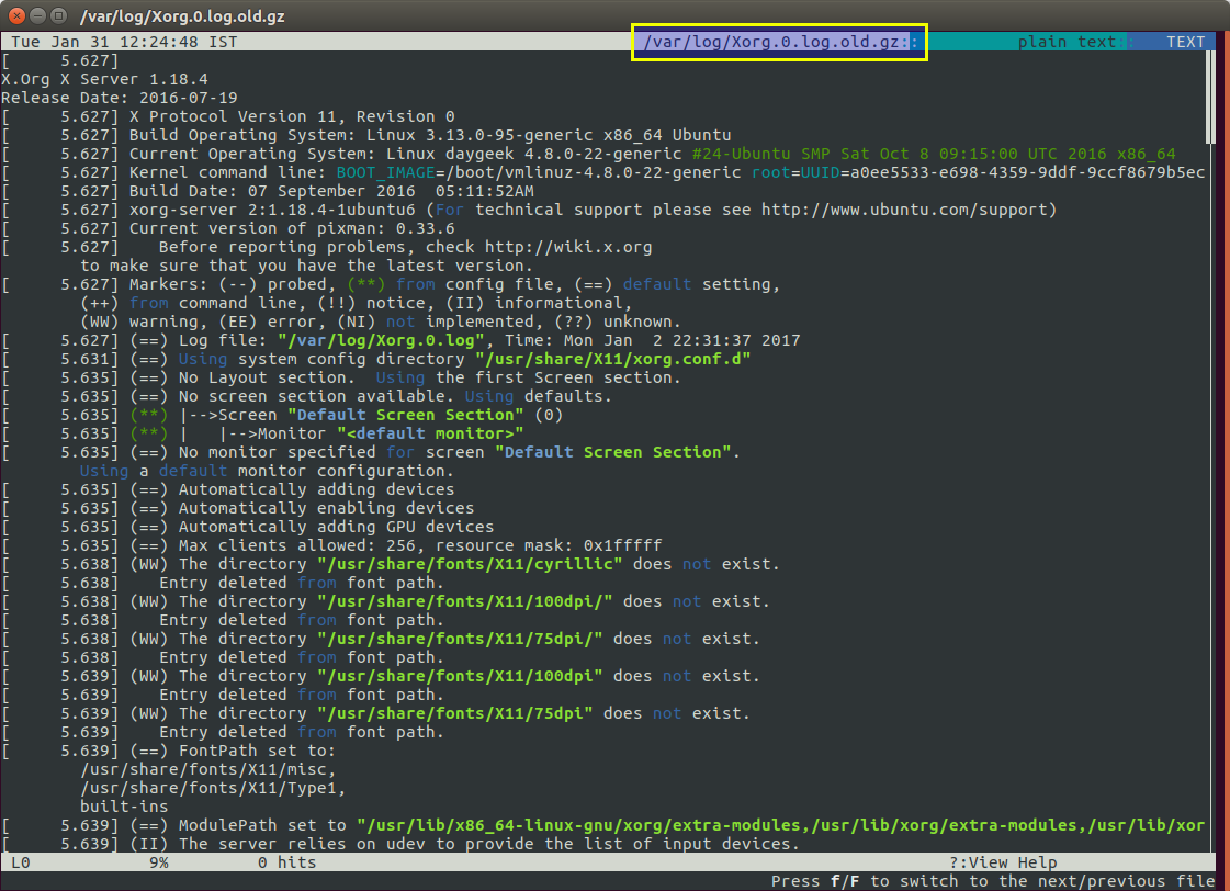 当你用一个普通文件查看器打开一个日志文件时,它会用纯文本格式显示所有信息(如果用更直白的话说的话:纯白——黑底白字),这样很难去发现和理解哪里有警告或错误信息。为了克服这种情况,快速找到警告和错误信息来解决问题, lnav 是一个入手可用的更好的解决方案。