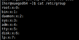 与用户一样,组信息也保存在系统的一个文件中。/etc/group文件包含系统上用到的每个组的信息。如下图所示: