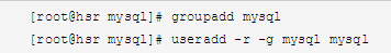 在创建新组后,默认没有用户被分配到该组下,使用usermod或useradd都可以将用户分配到指定组:例如之前安装mysql时,使用useradd来创建mysql用户,并指定到mysql组中.如下图所示: