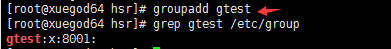 下面使用groupadd 命令在系统上创建新组(gtest),如下图所示:
