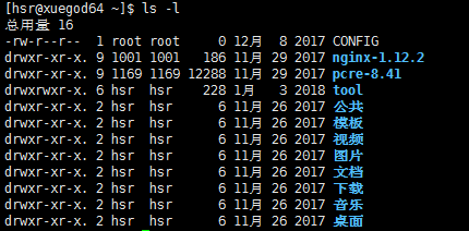 在了解用户和组之后,下面来解读文件权限,通过ls 命令输出来介绍分析。下面随意定位在个目录下。