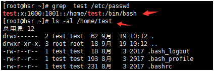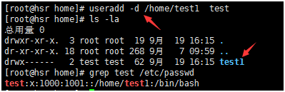上篇讲了useradd+m参数创建home目录的演示,下面新增test用户,并使用-d参数指定home文件启动文件目录为home/test1。,/etc/passwd文件中test用户也有了。如下图所示:
