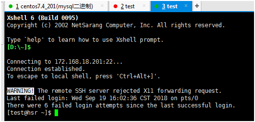 要注意的是使用passwd命令,只能修改自己的密码,只有root用户才有权限修改所有用户密码。设置了密码后,使用Xshell 远程工具就能连接上了,如下图所示:
