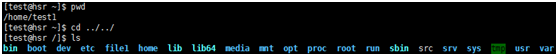 test用户目录提示符,默认在 /home/test1目录下, 使用cd 退回二级到了虚拟目录根目录下,如下所示: