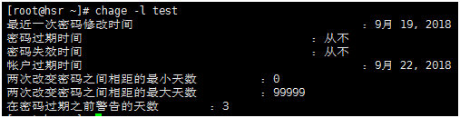 通过chage -l test 可以更加清楚易懂对test用户的设置: