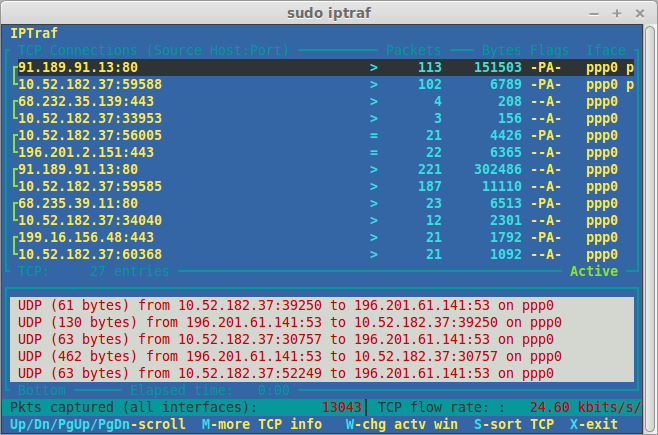 sudo apt-get install iptraf