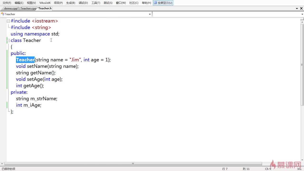 Demo.obj : error LNK2001: unresolved external symbol "public: class std::basic_string<char,struct std::char_traits<char>,class std::allocator<char> > __thiscall Teacher::getName(void)" (?getName@Teacher@@QAE?AV?$basic_string@DU?$char_traits@D@std@@V