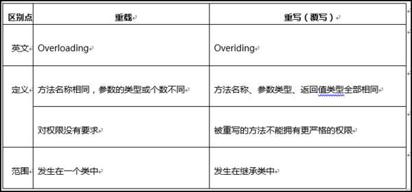 也叫覆盖,指在子类中定义一个与父类中方法同名同参数列表的方法。因为子类会继承父类的方法,而重写就是将从父类继承过来的方法重新定义一次,重新填写方法中的代码。