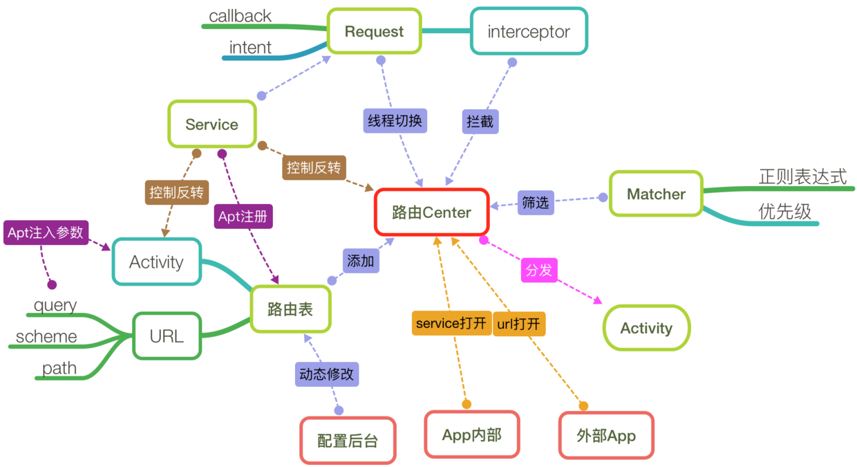 其实说到底,路由的本质就是注册再转发,围绕着转发可以进行各种操作,拦截,替换,参数获取等等,其他Apt、Rxjava说到底都只是为了方便使用出现的,这里你会发现各种路由库反而为了修复各种工具带来的问题,出现了原来没有的问题,譬如DeepLinkDispatch为了解决Apt没法汇总所有Module路由,每个module都要手动注册,ARouter为了解决Apt没法汇总所有Module路由,通过类操作耗时,才出现分组的概念。