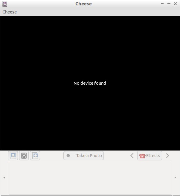 要验证网络摄像头是否真的被禁用,请打开任何即时通讯程序或网络摄像头软件,如 Cheese 或 Guvcview。你会看到如下的空白屏幕。