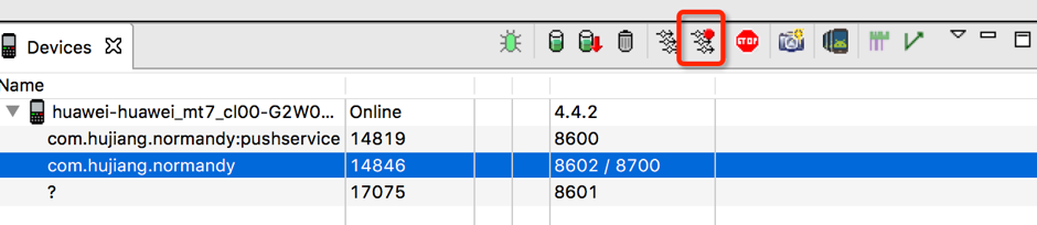 为了更精确的定位耗时方法,可以使用TraceView。打开DDMS,进入下面界面