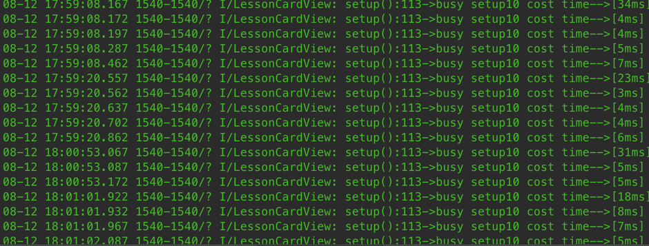 inflate方法可做的优化就是减少View层级,把最外层的RelativeLayout替换成LinearLayout。另外一个优化就是把 initLessonCardView方法加入延时,对于当前显示的item延时为0,不可见的item延时时间与当前View的位置步距依次延长。通过分步延时避免UI线程一直被占用。