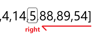 直到出现 a[right]<key, 这就说明有一个小数字出现在了后面,至于它是不是真的属于后面?这个还暂时不知道,所以先停下来,这时候的 right 就标记了这个位置。