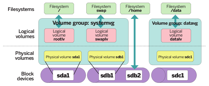逻辑卷管理器(LVM)让磁盘空间管理更为便捷。如果一个文件系统需要更多的空间,可以在它的卷组中将空闲空间添加到其逻辑卷中,而文件系统可以根据你的意愿调整大小。如果某个磁盘启动失败,用于替换的磁盘可以使用卷组注册成一个物理卷,而逻辑卷扩展可以将数据迁移到新磁盘而不会丢失数据。