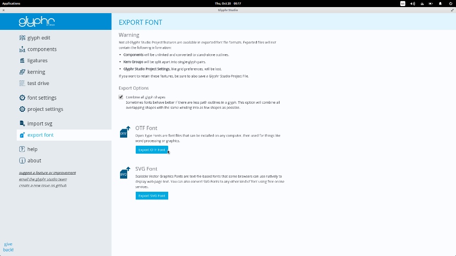 完成设计和优化后,我们还可以导出 ttf 和 svg 格式的字体。
