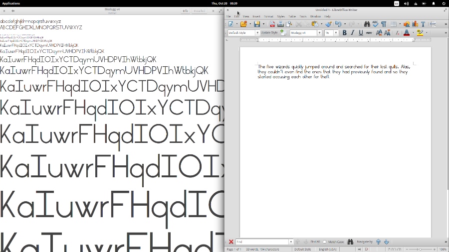 在 LibreOffice 中已经可以看见新的字体咯,同样也可以使用你系统中的其它文本应用程序如 Gedit 来测试新字体。