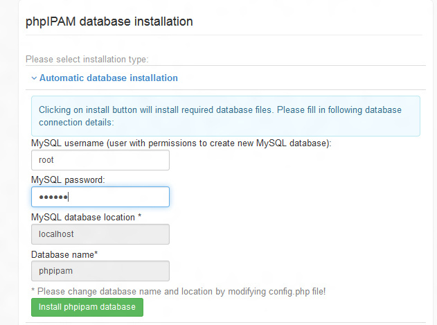 # mysqladmin -u root password NEWPASSWORDphpIPAM可以安装在任何Web服务器目录中,我们将会安装到Apache Web服务器的根目录下的/phpipam/子目录中。