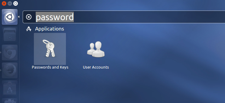 打开Dash,然后输入“password”来启动“密码和密钥”应用。
