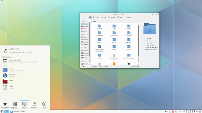 你现在就登录到KDE Plasma了。这里有一个KDE Plasma 5.2在Ubuntu 14.10下的截图: