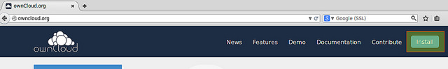 进入官方网站:http://owncloud.org,并点击‘Install’按钮(右上角)。