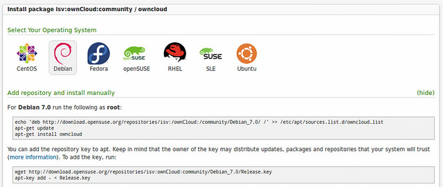 ownCloud提供了社区版(免费)和企业版(面向企业的有偿支持)。预编译的ownCloud社区版可以提供了CentOS、Debian、Fedora、openSUSE、,SLE和Ubuntu版本。本教程将演示如何在Debian Wheezy上安装和在配置ownCloud社区版。