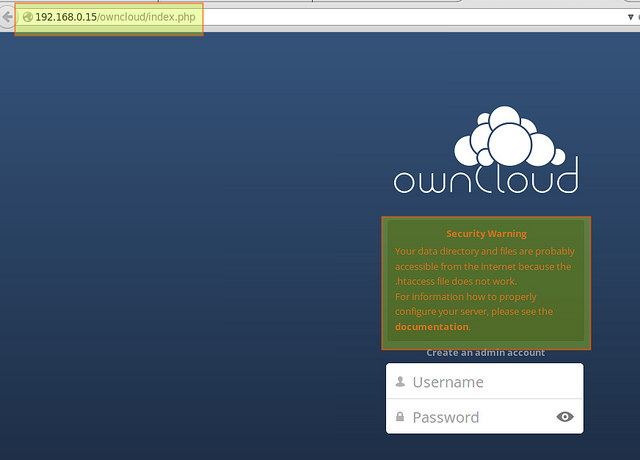 注意ownCloud可能会包一个Apache配置错误的警告。使用下面的步骤来解决这个错误来解决这些错误信息。