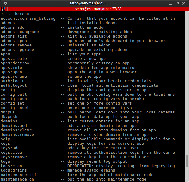 heroku login Enter your Heroku credentials. Email: enockseth@unixmen.com Password (输入是隐藏的): Authentication successful.