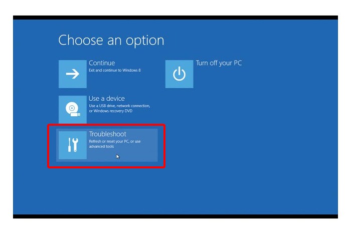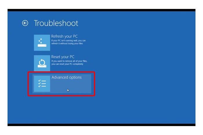 在疑难解答菜单中,选择高级选项: